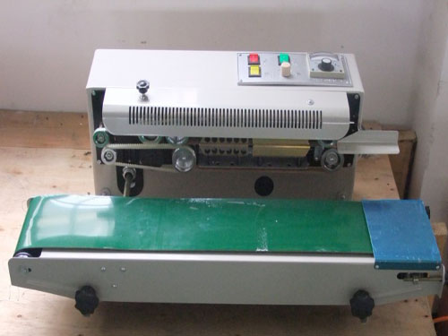 连续自动封口机采用电子恒温控制和自动输送装置,可控制各种不同形状的塑料薄膜带,能在各种包装流水线上配套使用,其封口长度不受限制。该封口机可配压花轮和印字轮,随需要更换字型,能在封口时印上出厂日期,保质期等,封口花纹及字迹清晰美观。封口印字可一次完成,日期、批号随需要更换,使用方便、符合物品的食品卫生法规定。该自动薄膜封口机适用于医药、农药、食品、日化、润滑油等行业的铝箔袋,塑料袋,复合袋的封口,本设备具有封口牢固、功效高;结构简单、紧凑,体积小;造型美观,技术先进,功耗低;操作维修保养方便等优点,是一种理想封口机械。本机亦可以卧式、立卧,卧式使用干燥物品的包装封口;立式适用于液体物品的包装封口。