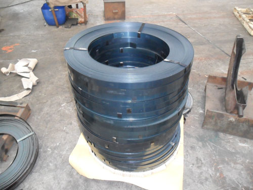 热镀锌打包带由于是在热镀锌流水作业线上生产,是通过连续退火、连续热浸锌液,钢板是在短时间加热和冷却,故其冲压性能比冷轧原板差。