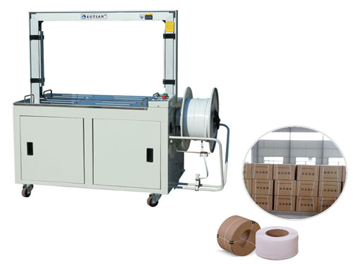适用于食品、医药、五金等行业纸箱打包、纸张打包等各种大小货物的自动打包捆扎。